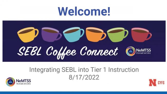 Description: SEBL Coffee Connect is a virtual event series hosted by NeMTSS that aims to build collaboration and community among educators and others implementing social, emotional and behavioral learning (SEBL) in Nebraska schools. In this session, SEBL Specialists from the Nebraska Center for Research on Children, Youth, Families and Schools (CYFS) discuss integrating SEBL into…